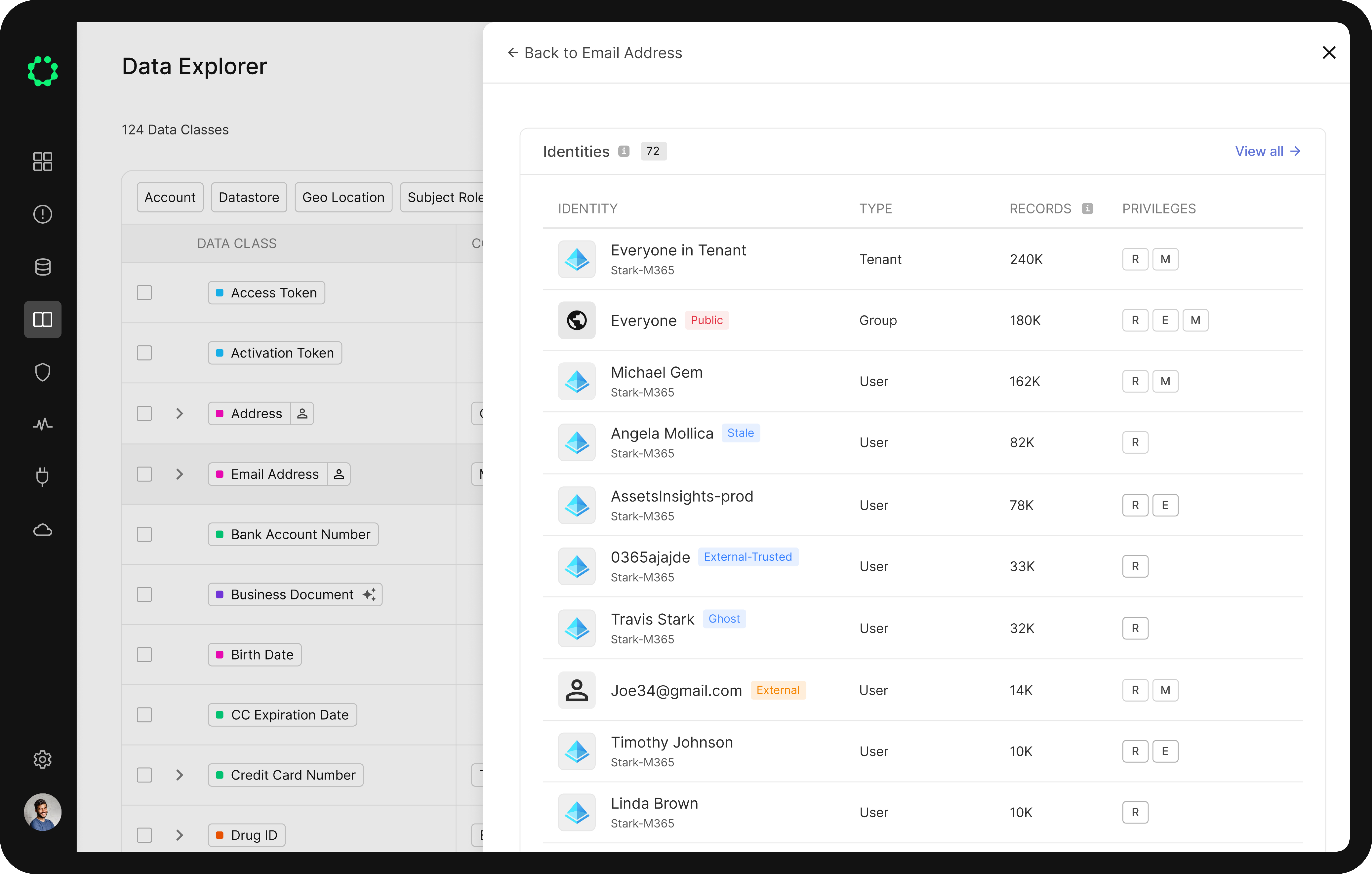 Cyera allows you to see what types of data classes and datastores Copilot users have access to. Cyera also helps you detect anomalies in access permissions, such as a human resources employee with access to customer data. Cyera highlights and prioritizes critical exposures, data security posture issues, and risks associated with overly permissive access within Microsoft 365 environments - whether from public access, organization-wide access, or individual access.