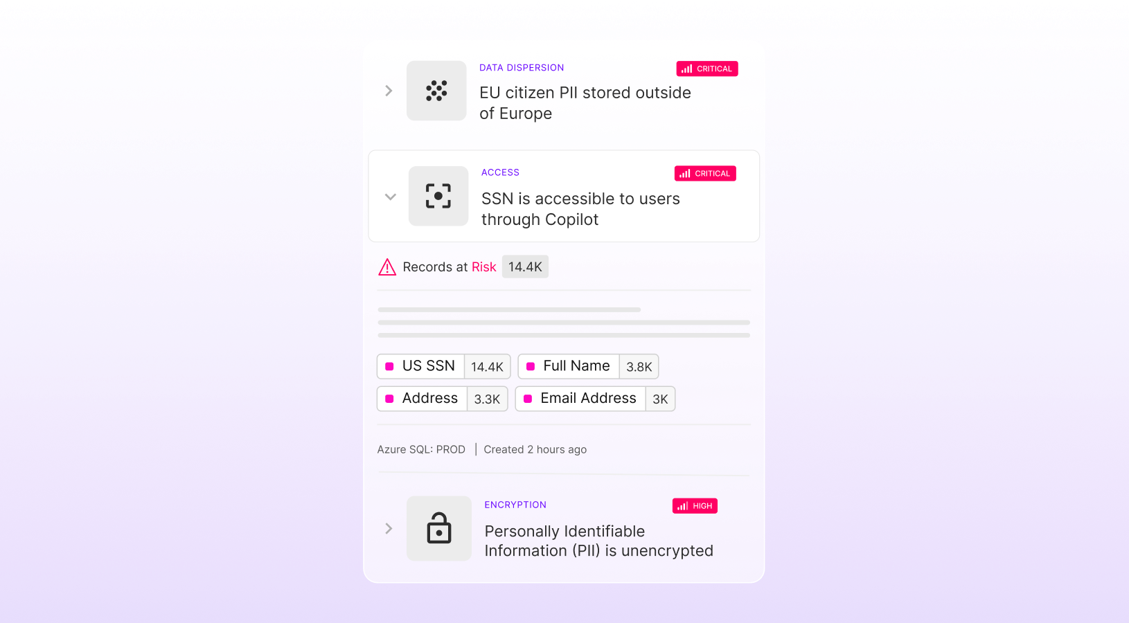 - Surface actionable data risk insights